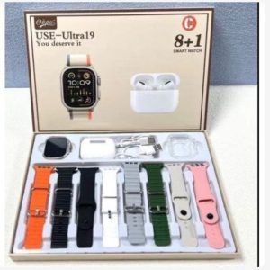 Includes: Smart watch, band, charging cable, air pods and user manual